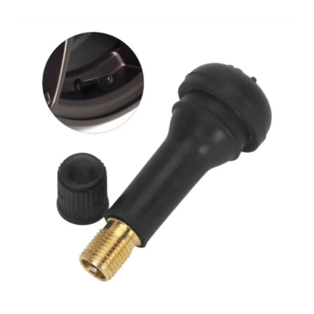 Válvulas de borracha resistentes e flexíveis, ideais para pneus sem câmara de diversos veículos, incluindo modelos nacionais e europeus como Audi, BMW, Mercedes-Benz e outros.